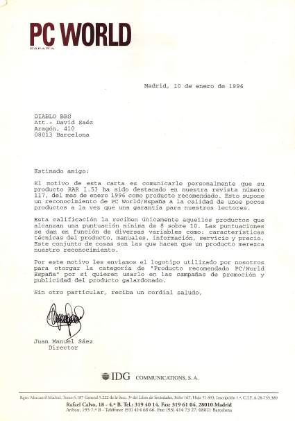 Ya en 1996, RAR, el precursor de WinRAR, obtiene el sello de producto recomendado por PC World
